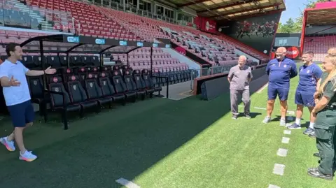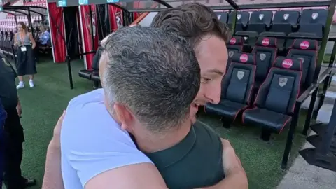 Lockyer embraces the Bournemouth medical team at Vitality Stadium (Photo: Reuters)